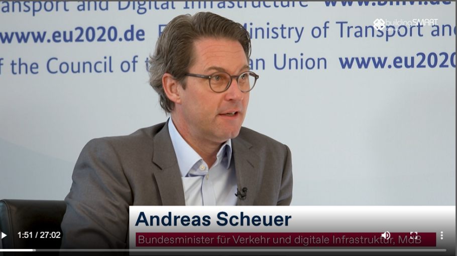Im Gespräch mit unserem Vorstandsvorsitzenden Prof. Rasso Steinmann stellte sich Bundesminister Andreas Scheuer den Fragen von Dr. Thomas Welter, der das buildingSMART-Forum Online moderierte. Auch dieses Gespräch wurde vorab produziert und als Video im Webseminar eingespielt. Andreas Scheuer betonte bei diesem Gespräch, wie notwendig Digitalisierung und digitale Anwendungen seien. Er sagte, dass jetzt die Zeit gekommen sei, mit und durch BIM "durchzustarten".