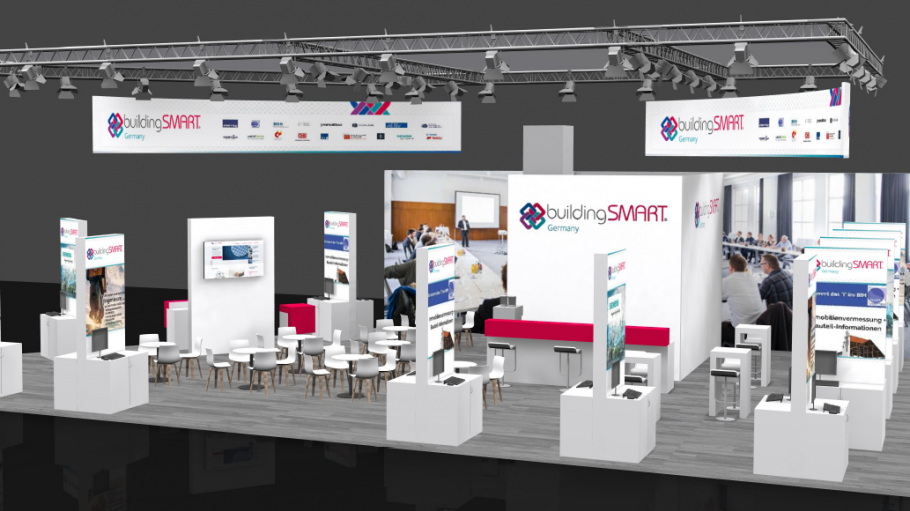 Der Gemeinschaftsstand von buildingSMART Deutschland soll mit 226 Quadratmeter Fläche und 24 Ausstellern auch die Vielfalt des Verbandes präsentieren. Zudem bietet der Gemeinschaftsstand einen sogennanten Full-Service: Die Bildschirme und Mikrofone stehen für alle Mitaussteller zur Verfügung.